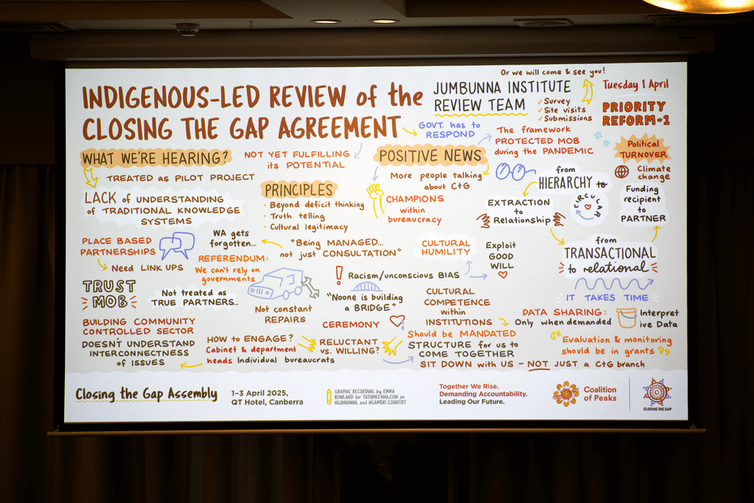 The review engaged widely with Aboriginal and Torres Strait Islander people across the country, through surveys, submissions, community forums, and direct conversations and a clear message emerged: governments are not living up to their commitments. There’s a significant gap between what was committed to in the Agreement and what communities are experiencing.